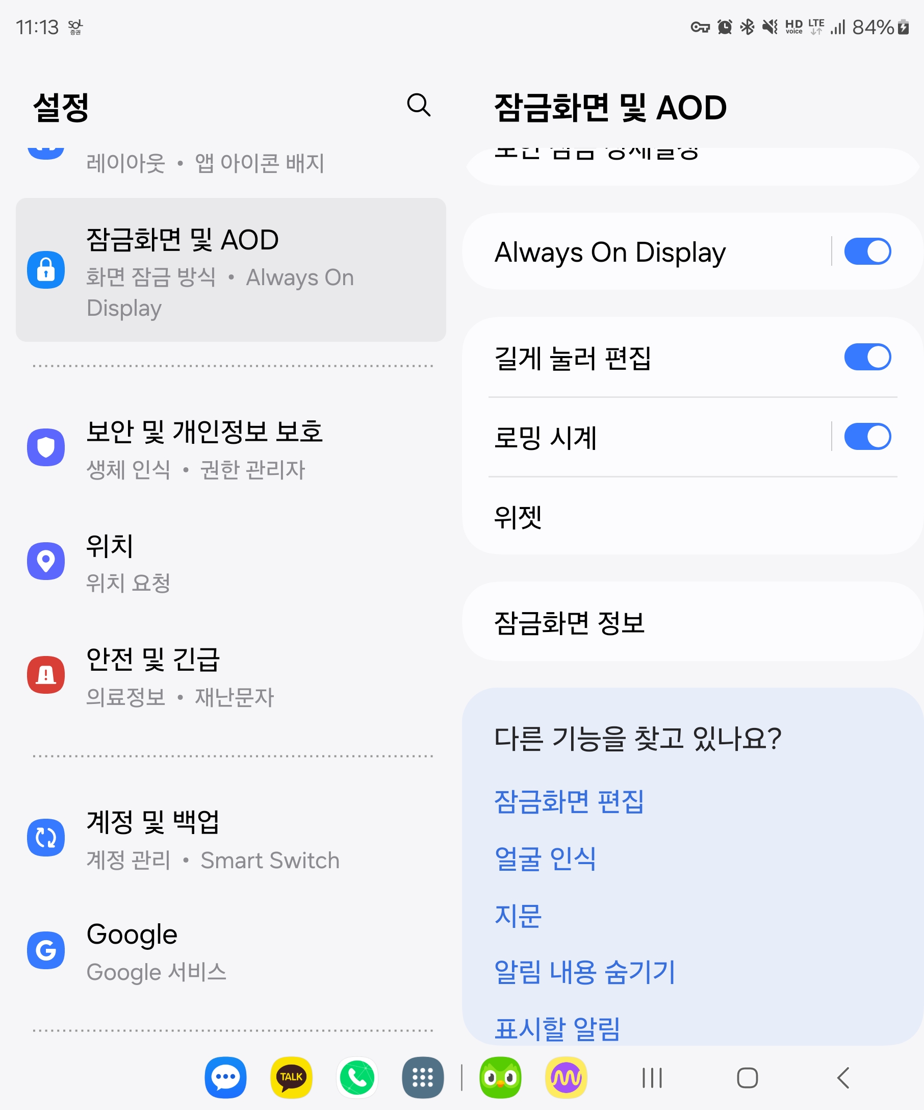 - 잠금화면 및 AOD
