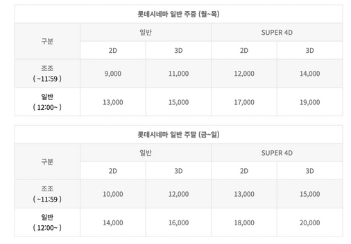 이 할인은 롯데 씨네마 기준으로 작성하였습니다.
