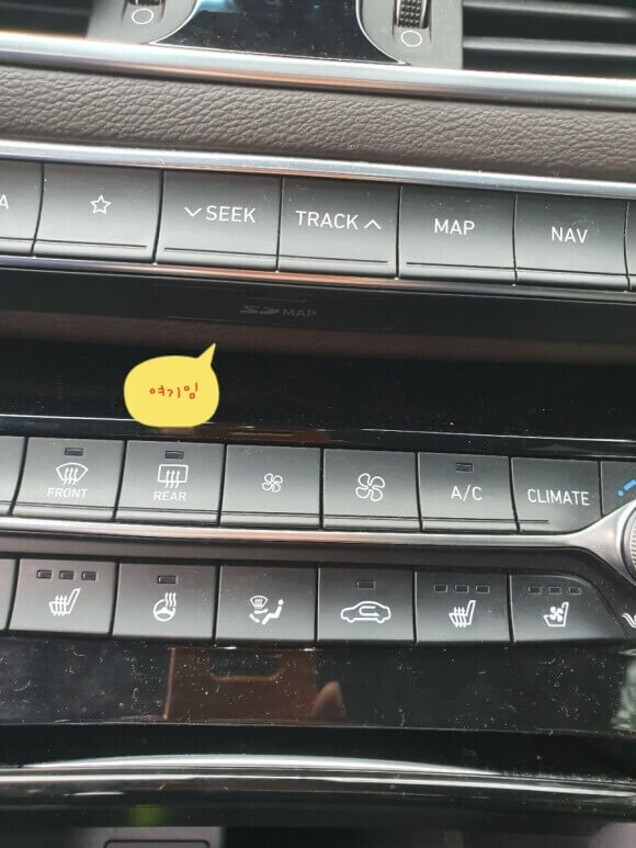 가장 중요한 것은 SD카드를 찾아서 빼서 컴퓨터로 가져가야 합니다. 그런데 의외로 SD카드 위치를 찾기 어렵습니다. 사진을 보시고 찾아주세요. 사진과 같이 오디오 컨트롤러 아래에 있습니다. 아래 사진의 그림으로 표시된 곳에 SD카드를 찾아서 준비해주세요.