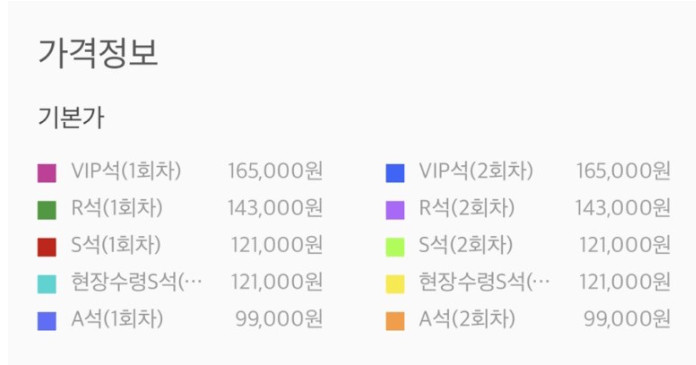 가격은 99,000원 부터 165,000원 까지인데, 국내 콘서트 가격 비교하면 비싼 편은 아니라고 합니다.