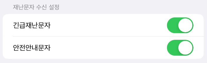 - 여기서 긴급재난문자, 안전안내문자 알림을 설정할수 있습니다.