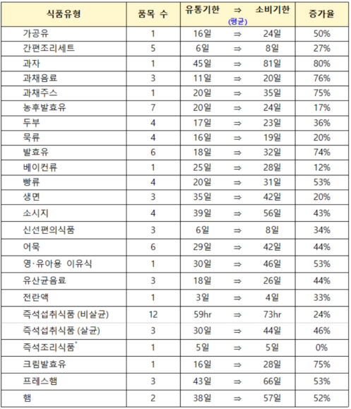 주요 소비 품목 유통기간 소비기한