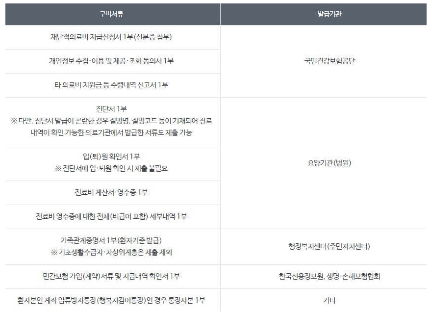 - 기초생활수급자 및 차상위 계층 : 본인부담 의료비 총액 100만원 초과