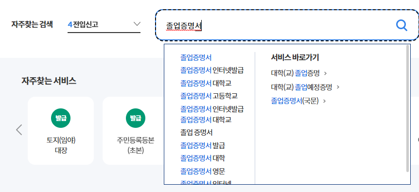 - 검색어에 졸업증명서를 검색