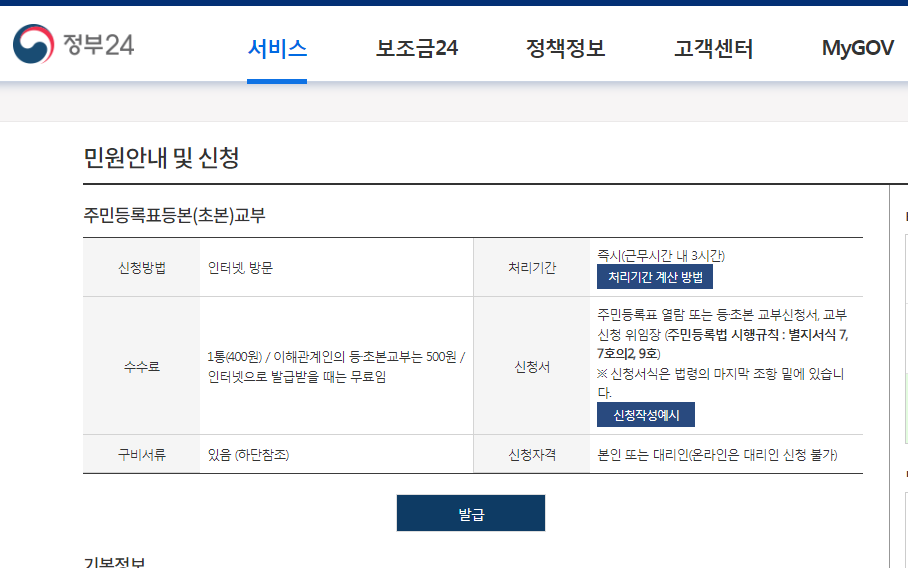 인터넷 발급은 정부24 사이트에서 가능합니다.