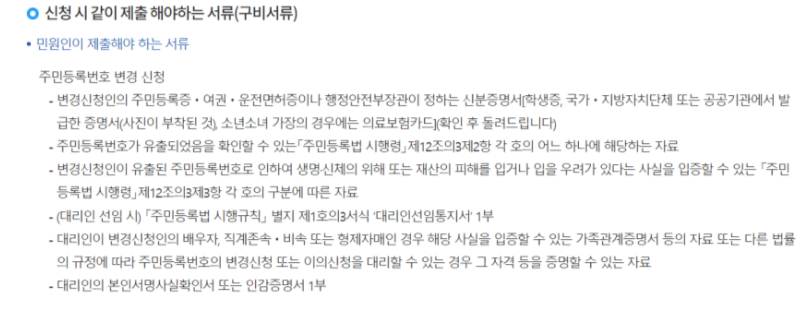 번호를 바꾸고 싶은 대상자는 그러므로 유출 피해를 입증할 자료를 가지고 관할 주민센터에서 변경 신청을 요청하면 심의를 거쳐서 주민번호를 바꿔주었는데 이제는 온라인 변경이 가능하게 된 것입니다.