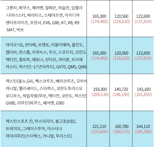 굿산차 외제차 캠핑카 오토바이 전부 선적은 가능한데 평일 주말 가격이 차량에 따라서 다 다릅니다. 아래 표를 참조하셔서 차이름을 보고 가격을 알아보면 됩니다.