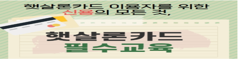 햇살론 카드를 발급받으려면 햇살론카드 이용자 교육을 필수 3과목 이상 수강해야 합니다. 수강하면 자동으로 전산으로 체크가 되기 때문에, 이 교육을 안 받는다면 햇살론 카드도 받을수 없습니다.